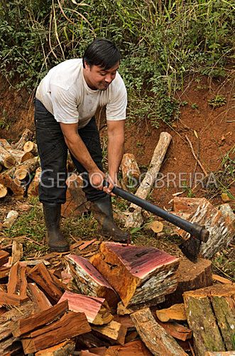 Keywords: Machado, Corte, Myrcia retorta, Guamirim-ferro, Guamirim, Rachando, Lenhador, Lenha, Homem, Adulto, Gente, 2012, Parana, General Carneiro, Vertical |