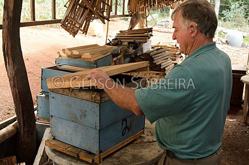 Keywords: Apiario, Horizontal, Caixa, Abelha, Apicultura, Brunopolis, 2012, Santa Catarina, Homem, Idoso, Apicultor |