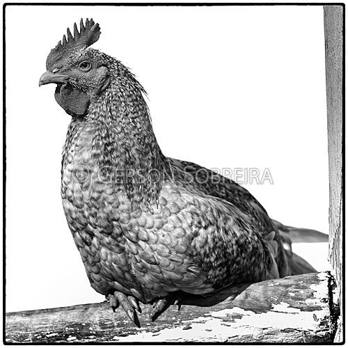 Galo, Aves, Avicultura, Descanso, Poleiro, Cambe, 2007, Parana, Preto e Branco, Quadrado, Fauna, Animal, Ave