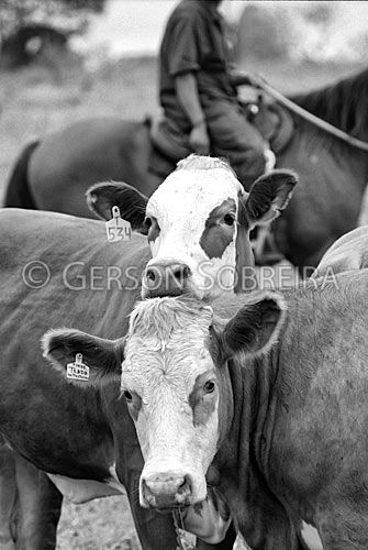 Keywords: Head, Simmental, Heifer, Cattle Livestock, Bovine, Animal, Iguatemi, Mato Grosso do Sul, 1999, Vertical, Black and white |