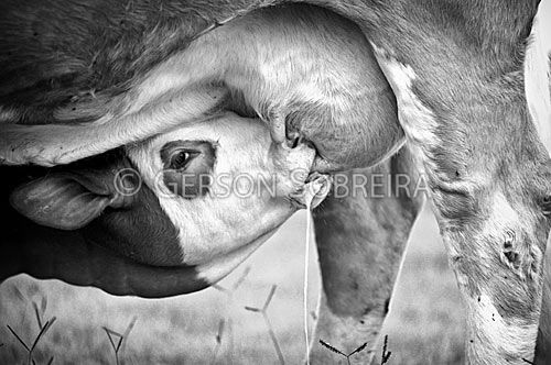 Keywords: Milk, Sucking, Breastfeeding, Heifer calf, Sao Paulo, Ubirajara, Simmental, Cow, Cattle Livestock, Bovine, Animal, Black and white, Horizontal, 1997 |