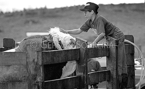 Parana, Lapa, Boy, Bull, Male, People, 1997, Black and white, Animal, Cattle Livestock, Bovine, Simmental
