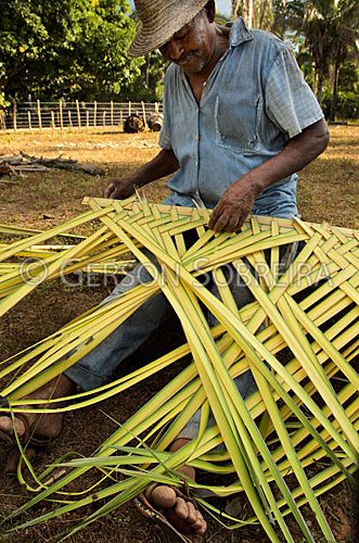 Keywords: Vertical, Telhado, Palmeira, Trançado, Trançando , Attalea speciosa, Babaçu, Jose de Freitas, Piaui, 2012, Homem, Idoso, Folha |