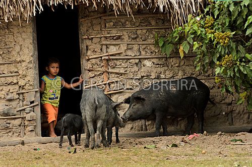 Keywords: House, Boy, Mud, Rammed earth, Rustic, House, Architecture, Horizontal, 2012, Piaui, Jose de Freitas, Rural, Wattle and daub, Free, Pig, Swine |