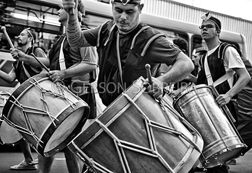 Keywords: Calourada, Gente, 2012, Parana, Londrina, Calouro, Bateria, Musica, Tambor, Preto e Branco, Horizontal, Cortejo, Urbano, Rua, Universitario |