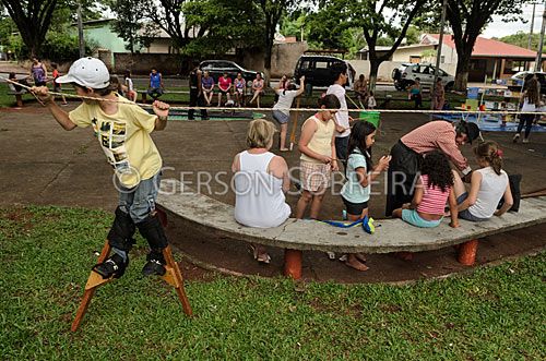 Menino Criança, Ludico, Gente, Praça, 2012, Parana, Brincadeira, Brinquedo, Perna de pau, Brincando