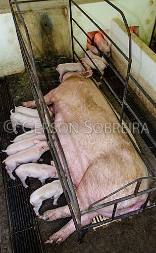 Título: Porca parida em baia maternidade |