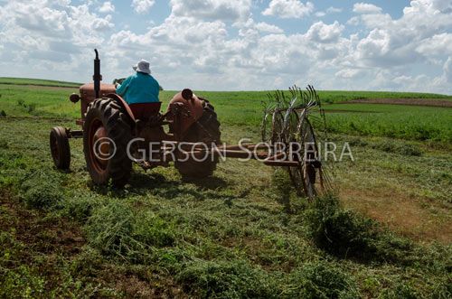 Keywords: Horizontal, Legumes, Parana, 2013, Santa Amelia, Fodder, Alfafa, Medicago sativa, Rake, Tractor, People, Woman, Adult, Family farming, Tedder, Haybob, Hay |
