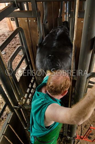 Keywords: Diagnostico de gestaçao, Vaca, Curral, Parana, 2013, Londrina, Animal, Gado Pecuaria, Bovino Bovinocultura, Brete, Veterinario, Manejo, Reproduçao, Palpaçao, Apalpando, Retal, Vertical |