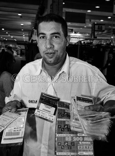 Vertical, Vendedor, Comercio, Preto e Branco, Bilhete, Loteria, Feicorte, 2012, Sao Paulo