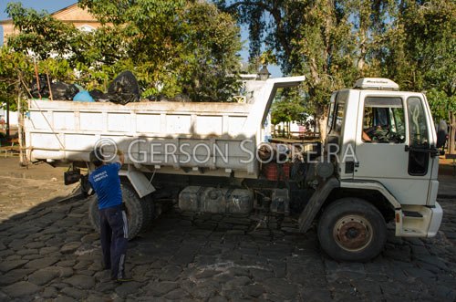 Caminhão recolhendo lixo - Goiás Velho