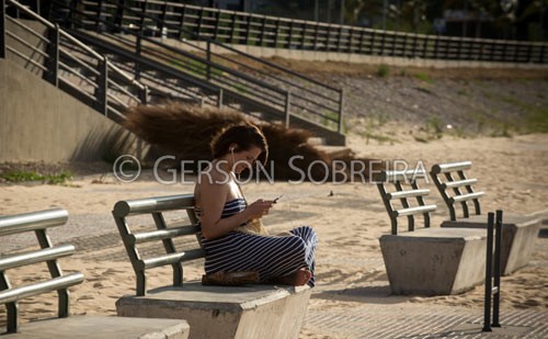 Keywords: Horizontal, Mulher, Moça, Jovem, Smartphone, Telefone, Celular, Avenida, Rio Paraguai, 2013, Urbano, Assunçao Asuncion, Praia |