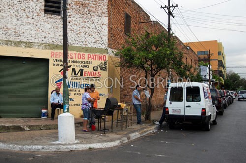 Keywords: Horizontal, Rua, Espetinho de carne, Churrasco, Vendedor, Ambulante, Comercio, Assunçao Asuncion, 2013, Paraguay Paraguai |