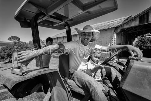 Keywords: Londrina, Black and white, Horizontal, Cowpoke Buckaroo Cowboy, Parana, 2013, People, Man, Young man, Young, Boy, Equipment, Tractor, Father, Son |