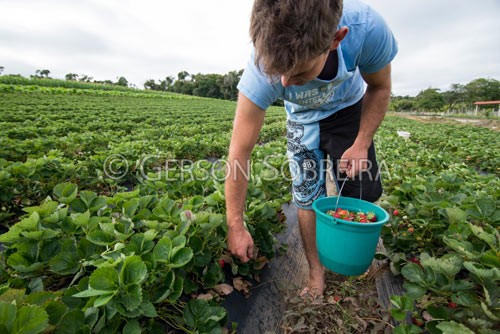 Keywords: 2014, Harvest, Fragaria, Strawberry, Fruit, Fruit-culture, Family farming, Organic, Horizontal, Prudentopolis, Parana, Man, Young man, Young, Agriculturalist |