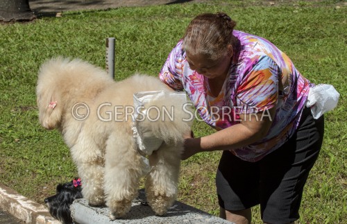 Parana, Poodle, 2014, Londrina, Urbano, Praça, Banco, Mulher, Idosa, Animal domestico, Cao Cachorro, Fralda