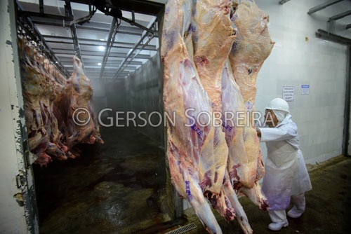 Keywords: 2014, Parana, Arapongas, Animal, Gado Pecuaria, Bovino Bovinocultura, Braford, Frigorifico, Novilha, Carcaça, Horizontal, Camara fria Camara frigorifica |
