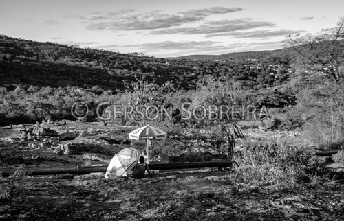 Keywords: 2014, Black and white, Wheelbarrow, River, Chapada Diamantina, Lençois, Bahia, Horizontal, Trade, Woman, Old aged woman, Seller |