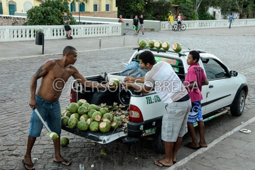 2014, Comercio, Bahia, Lençois, Horizontal, Coco, Agua-de-coco, Cocos nucifera, Rua, Ambulante