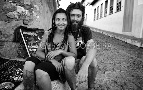 Keywords: 2014, Black and white, Ambulant, Trade, Craftsman, Craftwork, Man, Woman, Young, Couple, People, Bahia, Lençois, Horizontal |