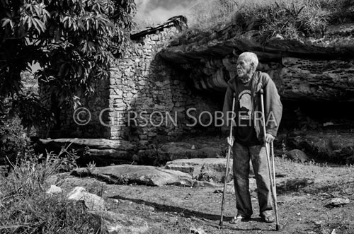 Keywords: 2014, Preto e Branco, Horizontal, Invalido, Garimpeiro, Casa de Pedra, Bahia, Mucuge, Homem, Idoso, Muletas |