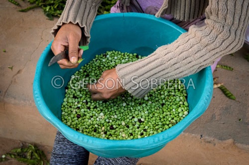 Keywords: 2014, Horizontal, Descascando, Povoado, Seabra, Bahia, Cocho do Malheiro, Mulher, Feijao Andu, Guandu, Cajanus cajan |
