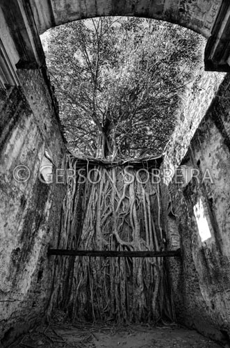 Keywords: 2014, Gameleira, Preto e Branco, Arvore, Figueira, Historia, Igreja Bom Jesus de Matozinhos, Degradado, Deteriorado, Ruina, Tombado, Antigo, Patrimonio historico, Arquitetura, Vertical, Minas Gerais, Varzea da Palma, Barra do Guaicui |