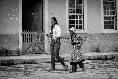 Keywords: Minas Gerais, Preto e Branco, Gentileza, Mulher, Idosa, Serro, 2014, Horizontal, Sao Gonçalo do Rio das Pedras, Povoado, Rua |