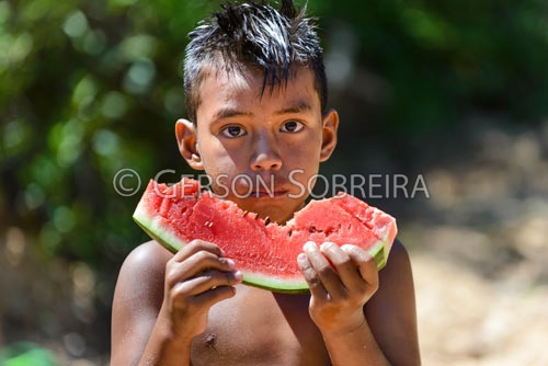 Keywords: Parana, Eating, Watermelon, Indian, Reserva Indigena do Apucaraninha, Horizontal, 2014, Londrina, Kaingang, Boy |