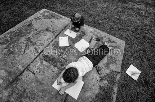 Horizontal, Preto e Branco, Menino Criança, Niko, Morretes, Parana, 2015, Pintura, Desenho, Desenhando