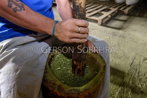 Pilando erva-mate cancheada