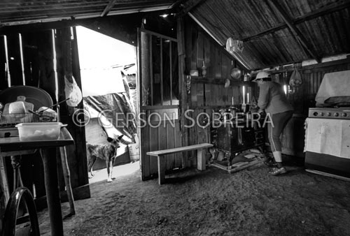 Keywords: 2015, Preto e Branco, Cozinha, Mulher, Fogao a lenha, Barraco, Horizontal, Parana, Comunidade Remanescente Quilombola, Acampamento, Reserva do Iguaçu, Fundao, Paiol de Telha |