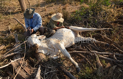 Keywords: 2015, Gado Pecuaria, Bovino, Horizontal, Teniente Pico, Paraguay Paraguai, Chaco, Boi, Vaqueiro Peao Cowboy, Imobilizado, Medicamento, Aplicaçao, Aplicando, Antiinflamatorio, Injeçao |