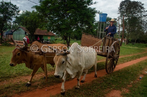 Keywords: 2016, Old aged man, Agriculturalist, Horizontal, Animal traction, Rural, Transport, Chuck wagon, Bullock Cart, Paraguay, Bovine, Liberacion |