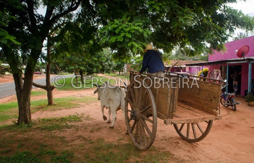 Keywords: 2016, Old aged man, Agriculturalist, Horizontal, Animal traction, Rural, Transport, Chuck wagon, Bullock Cart, Paraguay, Bovine, Liberacion |
