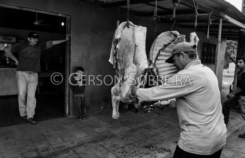 2016, Liberacion, Butcher, Horizontal, Bovine, Paraguay, Meat, Carcass, Butchery, Trade, Black and white