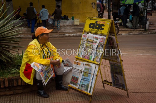 Keywords: 2016, Rua, Jornaleiro, Jornal, Vendedora, Mulher, Ambulante, Vendedor, Horizontal, Concepcion, Paraguay Paraguai |