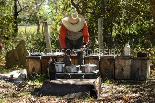 Keywords: 2016, Panela, Broaca, Fogao a lenha, Trempe, Comida, Cozinha, Pantaneiro, Comitiva Pantaneira, Mato Grosso do Sul, Pantanal, Rio Verde, Horizontal, Vaqueiro Peao Cowboy, Boiadeiro, Almoço |