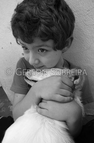 Londrina, Preto e Branco, Vertical, Niko, Menino Criança, 2015, Parana, Afago, Afeto, Cao Cachorro