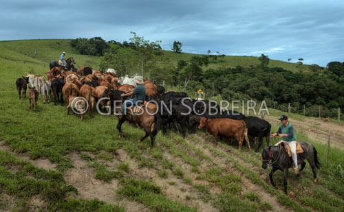 Keywords: Parana, Herd, Roundup, Drive, Driving, Cowpoke Buckaroo Cowboy, Aberdeen Angus, Cow, Female, Cow group, Group, Cattle Livestock, Bovine, Horizontal, 2017, Ortigueira, Horse |