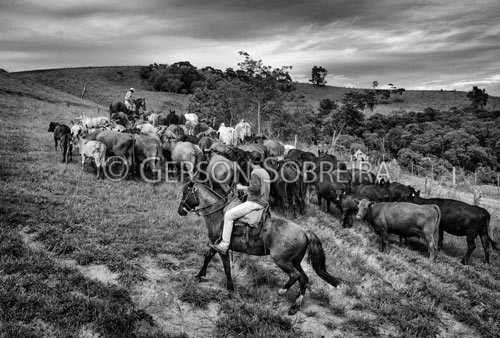 Keywords: Parana, Herd, Black and white, Horse, Ortigueira, 2017, Horizontal, Cattle Livestock, Bovine, Cow group, Group, Cow, Female, Aberdeen Angus, Cowpoke Buckaroo Cowboy, Driving, Drive, Roundup |