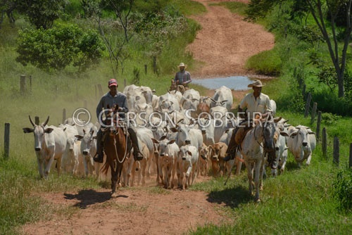 Keywords: Parana, Conduzindo, Conduçao, Tocando, Nelore, Santa Fe, Horizontal, 2017, Gado Pecuaria, Bovino, Vacada parida, Vaca, Femea, Vaqueiro Peao Cowboy, Estrada, Chao |