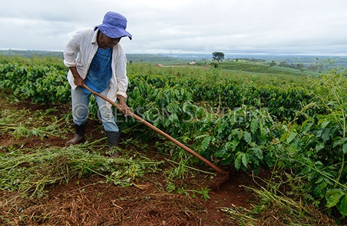 Keywords: 2017, Hoe, Rural worker, Plantation, Arabica, Coffee, Agriculture, Marialva, Parana, Horizontal, Cleared land, Rubbing, Man |