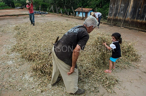Keywords: 2017, Horizontal, Tomazina, Parana, Agriculturalist, Family farming, Man, Yard, Bean, Beating, Processing, Community effort, Old aged man |