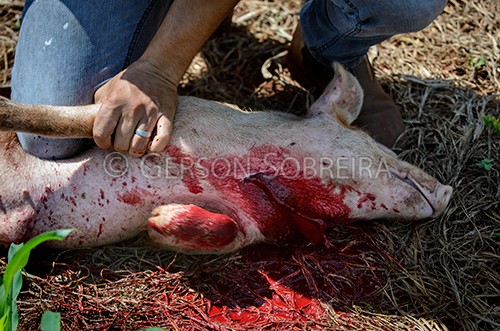 Keywords: Horizontal, Sangria, Sangue, Paiquere, Parana, Londrina, 2017, Suino Suinocultura, Porco, Leitao, Abate, Carne, Homem, Morte |