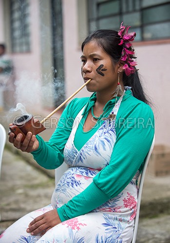2017, Vertical, Indigena, Indio, Parana, Antonina, Mulher, Cachimbo, Fumo, Fumando