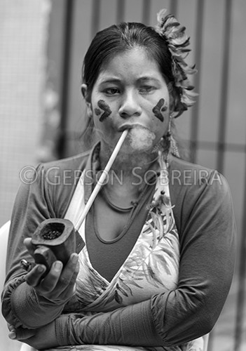 Keywords: 2017, Preto e Branco, Vertical, Indigena, Indio, Parana, Antonina, Mulher, Cachimbo, Fumo, Fumando |