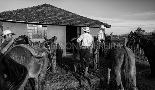 Keywords: Parana, Preto e Branco, Mula, Tropa, Desencilhando, Vaqueiro Peao Cowboy, Homem, 2017, Horizontal, Santa Fe |