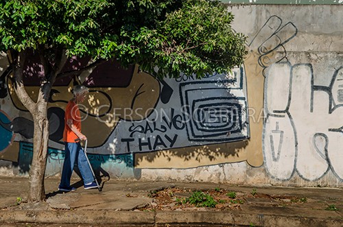 Keywords: Parana, Mobilidade, Rua, Buraco, Caminhando, Calçada, Ruth Nunes Sobreira, Mulher, Idosa, Horizontal, Londrina, 2017, Bengala |