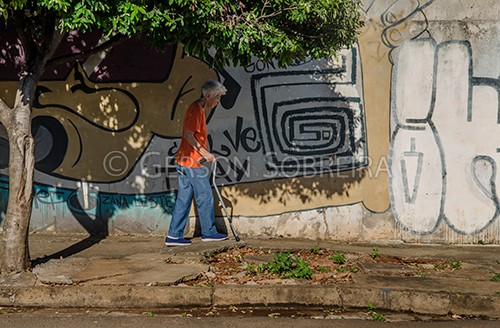 Keywords: Parana, Bengala, 2017, Londrina, Horizontal, Idosa, Mulher, Ruth Nunes Sobreira, Calçada, Caminhando, Buraco, Rua, Mobilidade |